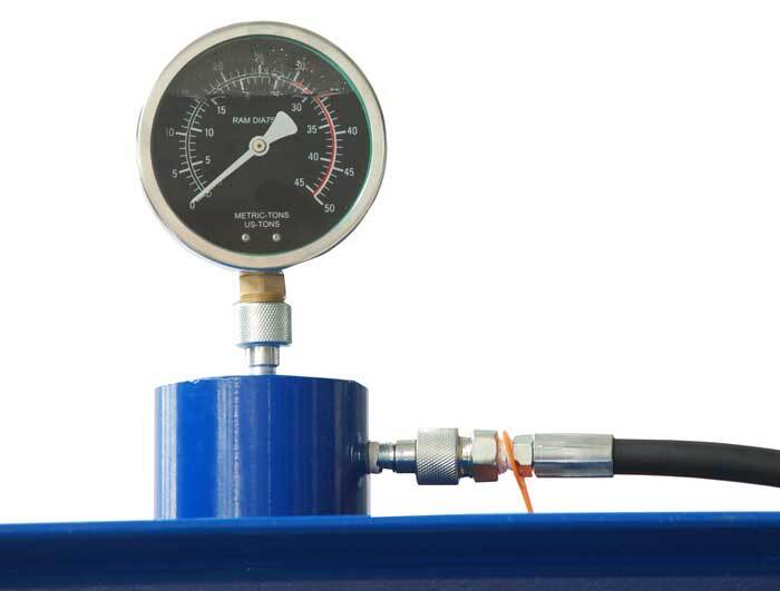 - Большой манометр, размещенный в верхней точке рамы для комфортного чтения показаний при работе.