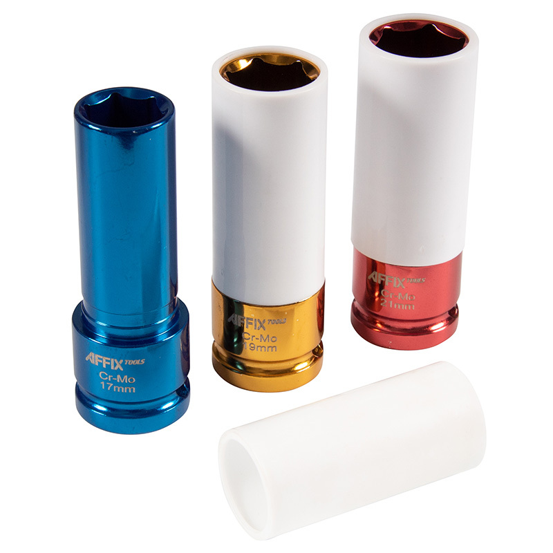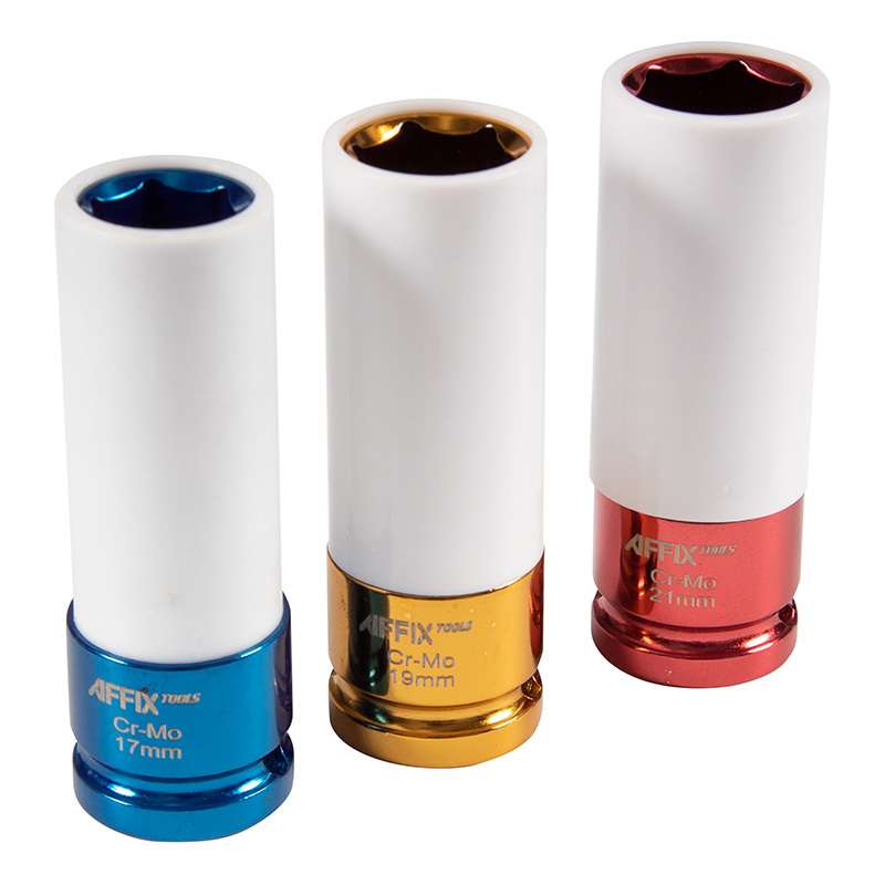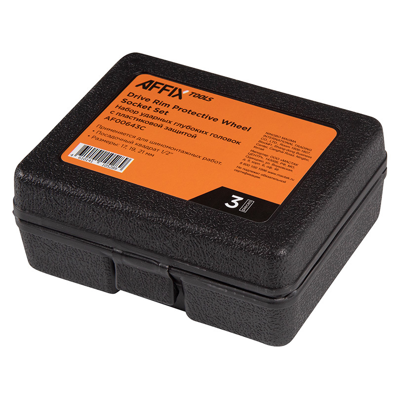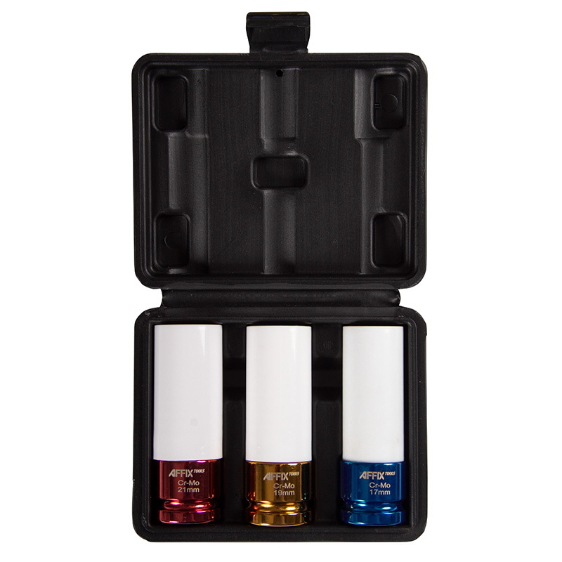 - AFFIX (AF00643C) Набор ударных глубоких шестигранных головок 1/2", 17, 19, 21 мм, пластиковое покрытие, кейс