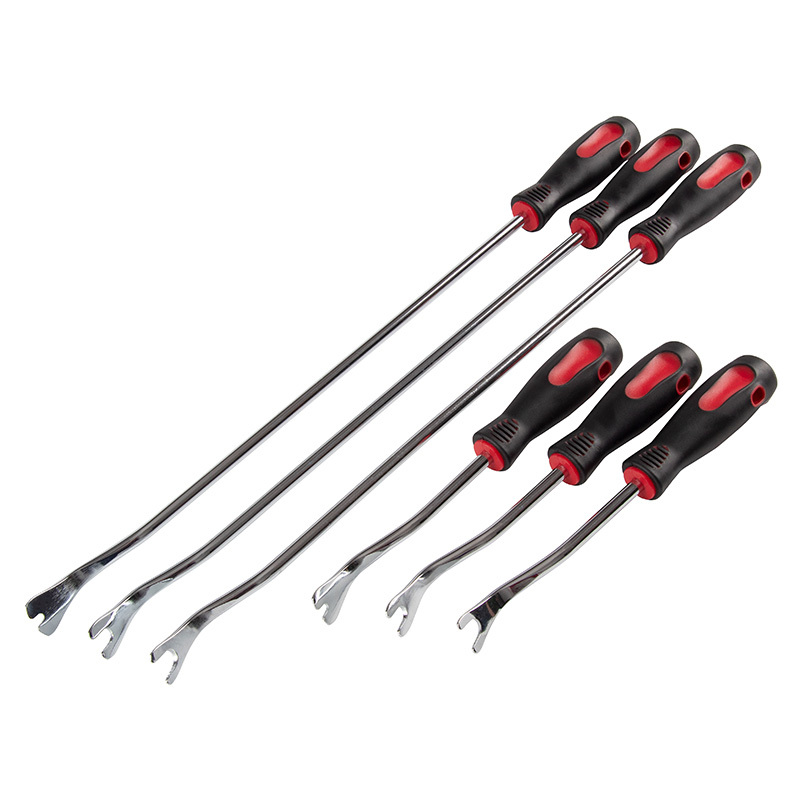 - Инструменты имеют эргономичные рукояти из PP+TPR, а форма съемников позволяет проводить работы без опасения повредить приборную панель или внутреннюю обшивку авто.