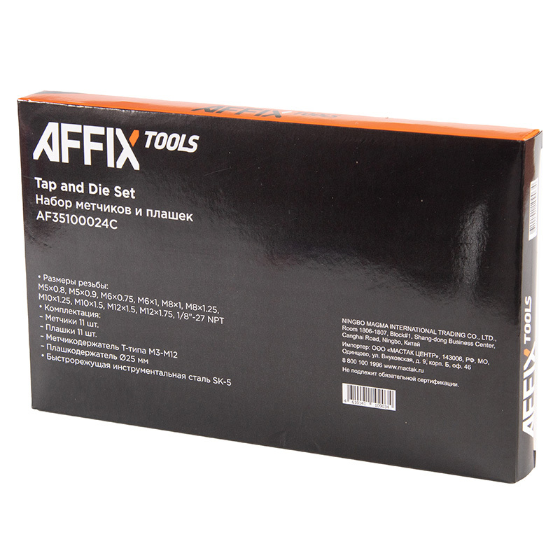 - AFFIX (AF35100024C) Набор метчиков и плашек SK-5 M5-M12, кейс, 24 предмета