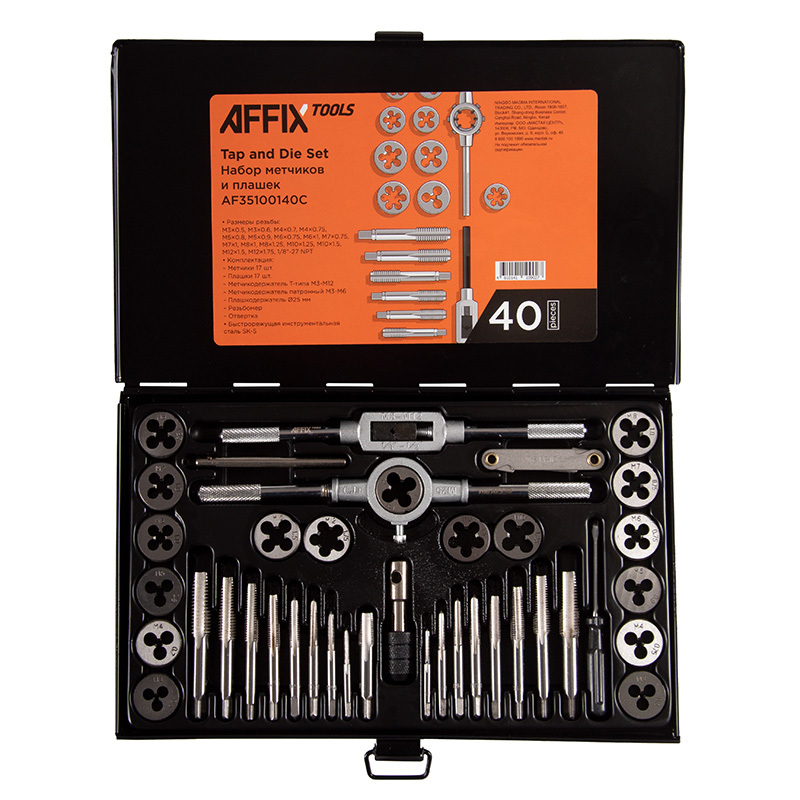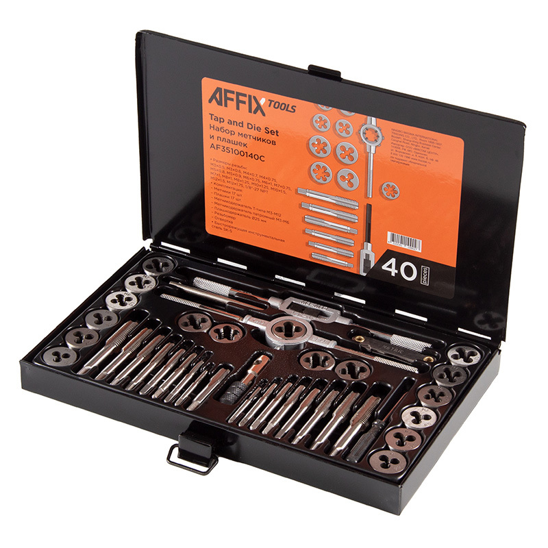 - AFFIX (AF35100140C) Набор метчиков и плашек SK-5 M3-M12, кейс, 40 предметов