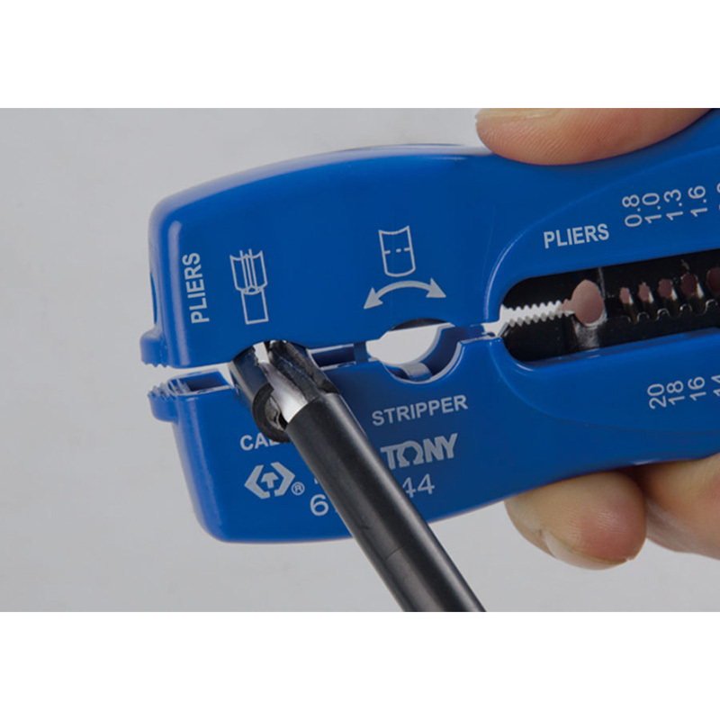 Универсальный стриппер KING TONY 6751-44 применяется при электромонтажных работах и предназначен для снятия изоляции и резки проводов.