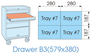 Размер ложемента адаптирован для размещения на полке инструментальной тележки.