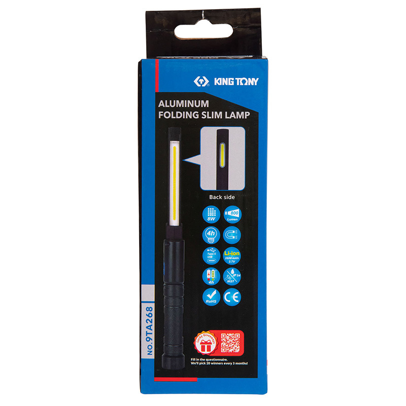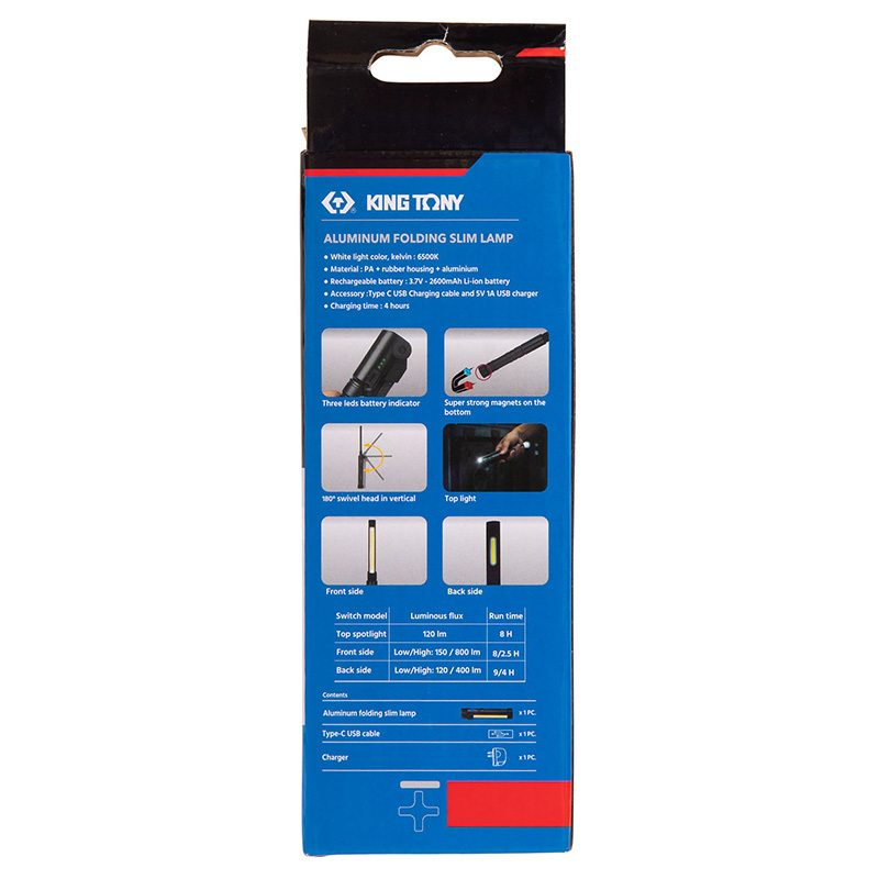 - KING TONY (9TA268A) Фонарь светодиодный, шарнирный, магнит, Li-Ion, 800 люмен
