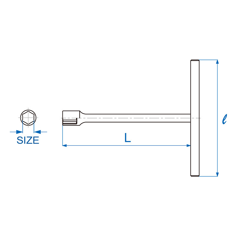• Т-образная рукоятка и удлиненная рабочая часть ключа удобны при работе с торцевым крепежом, расположенном в углублении.