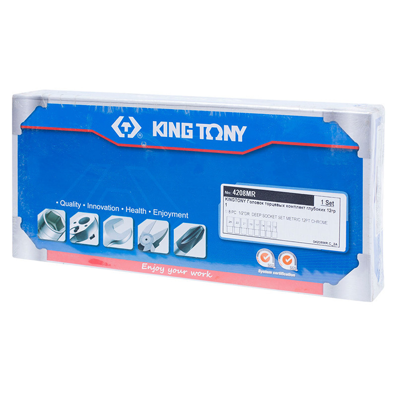 - KING TONY (4208MR01) Набор глубоких торцевых головок 1/2", 12-гранные, 12-24 мм, 8 предметов