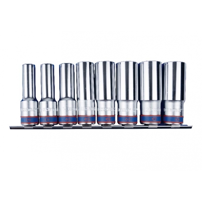 - KING TONY (4308MR11) Набор глубоких торцевых головок 1/2", 6-гранные, 12-24 мм, 8 предметов