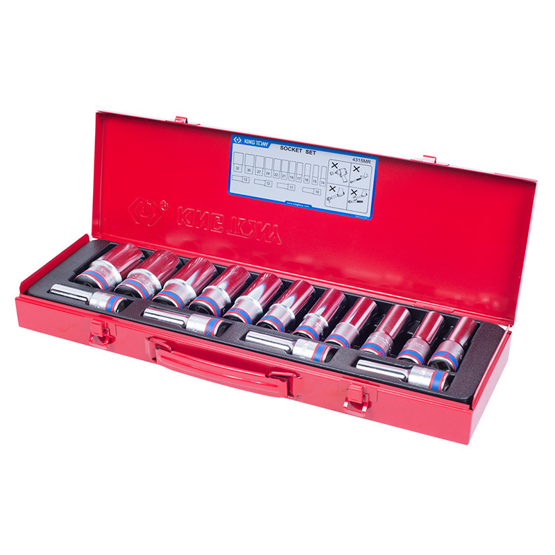 - KING TONY (4315MR) Набор глубоких торцевых головок 1/2", 6-гранные, 10-32 мм, 15 предметов