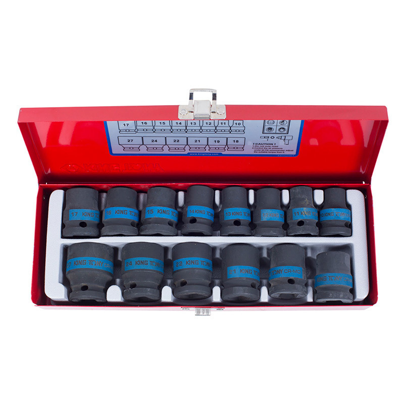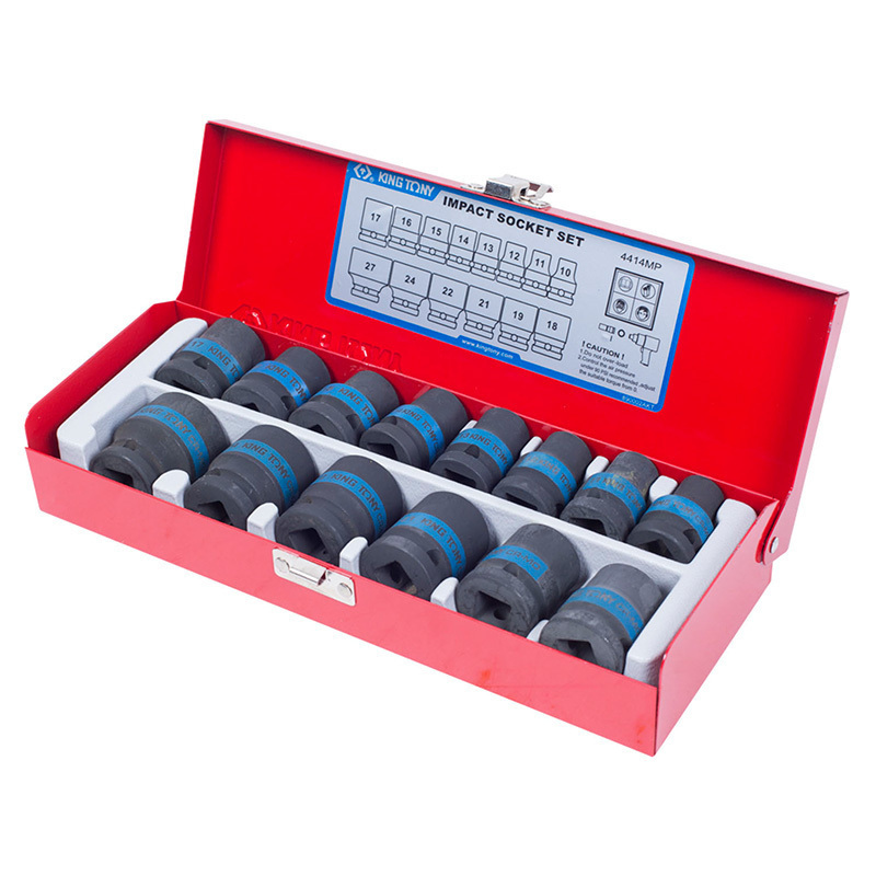 - KING TONY (4414MP) Набор ударных торцевых головок 1/2", 6-гранные, 10-27 мм, 14 предметов
