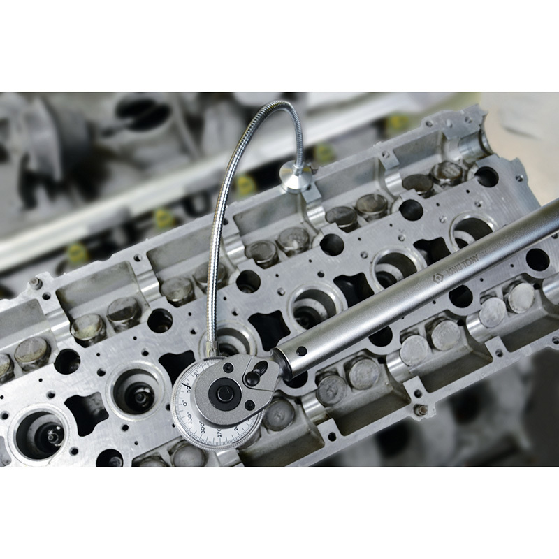 Угломер KING TONY 34660A применяется с динамометрическим ключом в случае необходимости затяжки крепежа с определенным моментом и углом.