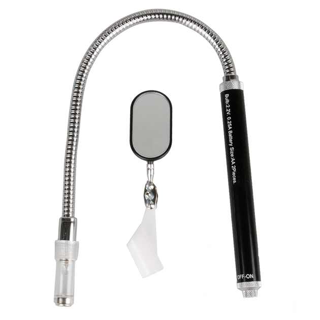 Зеркало инспекционное на гибком стержне KING TONY 9TQ02 предназначено для осмотра полостей автомобильных агрегатов и считывания агрегатных номеров.
