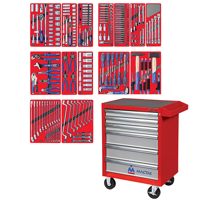 - МАСТАК (52-06270R) Набор инструментов "ЛИДЕР" в красной тележке, 270 предметов