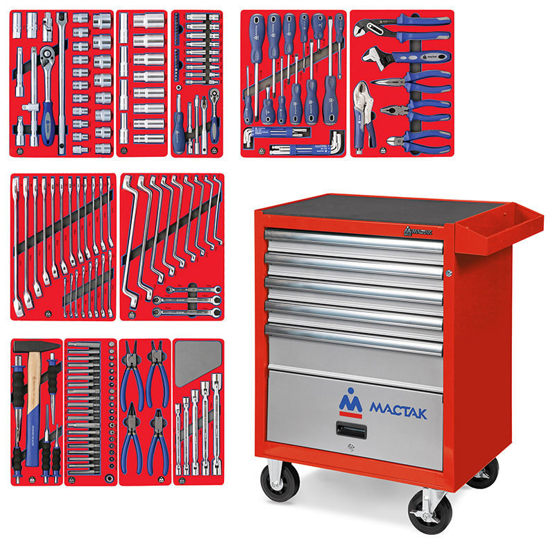 - МАСТАК (52-05205R) Набор инструментов "МАСТЕР" в красной тележке, 205 предметов