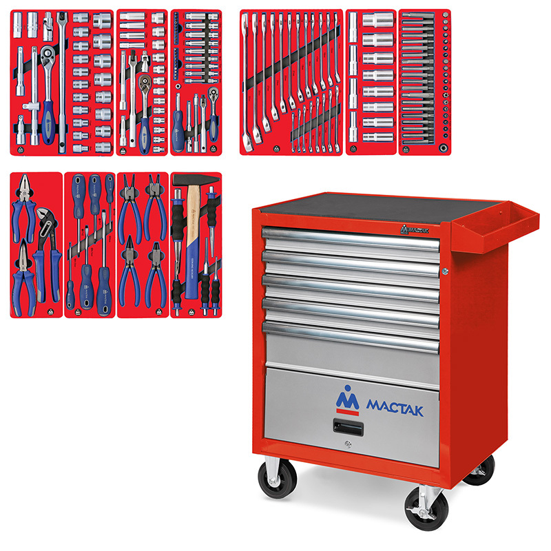 - МАСТАК (52-05186R) Набор инструментов "СТАНДАРТ" в красной тележке, 186 предметов
