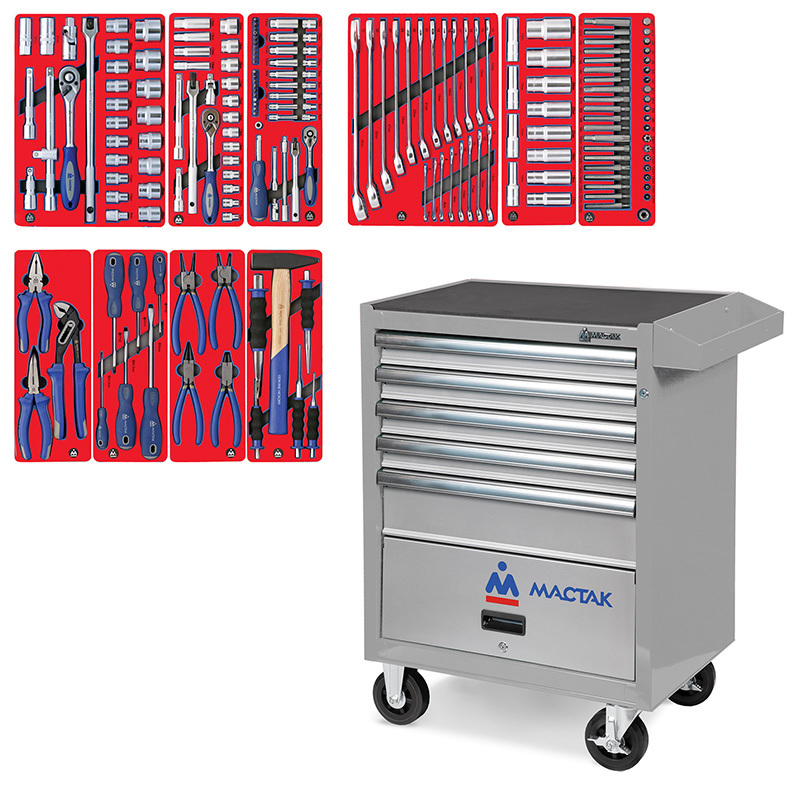 - МАСТАК (52-05186G) Набор инструментов "СТАНДАРТ" в серой тележке, 186 предметов