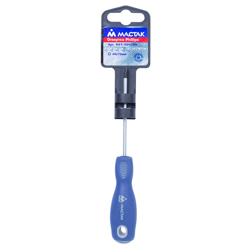 - МАСТАК (041-00075H) Отвертка крестовая Phillips PH0 x 75 мм