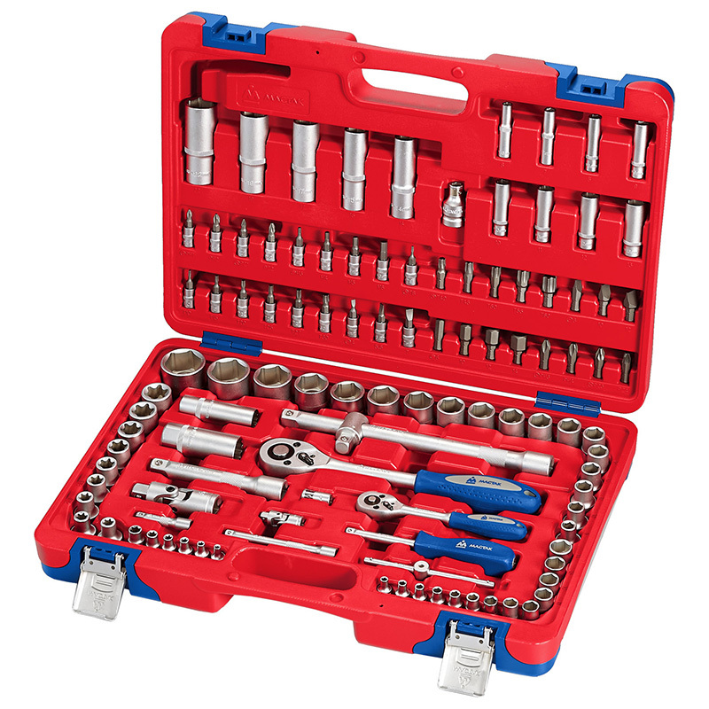 Инструменты марки МАСТАК изготовлены из инструментальной легированной хром-ванадиевой стали специального сплава. Технология изготовления ключей и головок включает в себя метод горячей ковки с последующей термообработкой, придающим инструментам особую прочность и высокую надежность, что дает возможность профессионального использования набора в условиях автосервисной мастерской, станции технического обслуживания, а также на производстве.