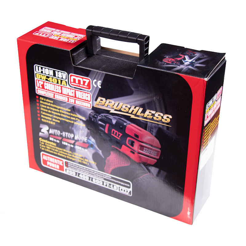 Гайковерт имеет маркировку BRUSHLESS MOTOR, которая означает, что он оснащен бесщеточным двигателем. В устройстве бесщеточного двигателя так же присутствуют ротор и статор, только обмотка здесь расположена не на роторе, как у щеточных двигателей, а на статоре. Вращение ротора приводит в действие принцип электромагнитной индукции.