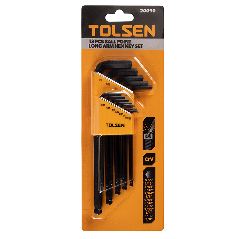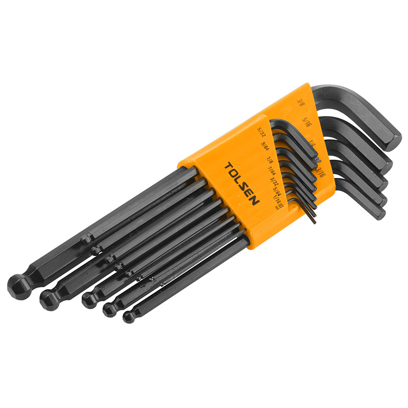 - TOLSEN (TT20090) Набор Г-образных шестигранников 0,05"-3/8", дюймовые, с шаровым окончанием, 13 предметов